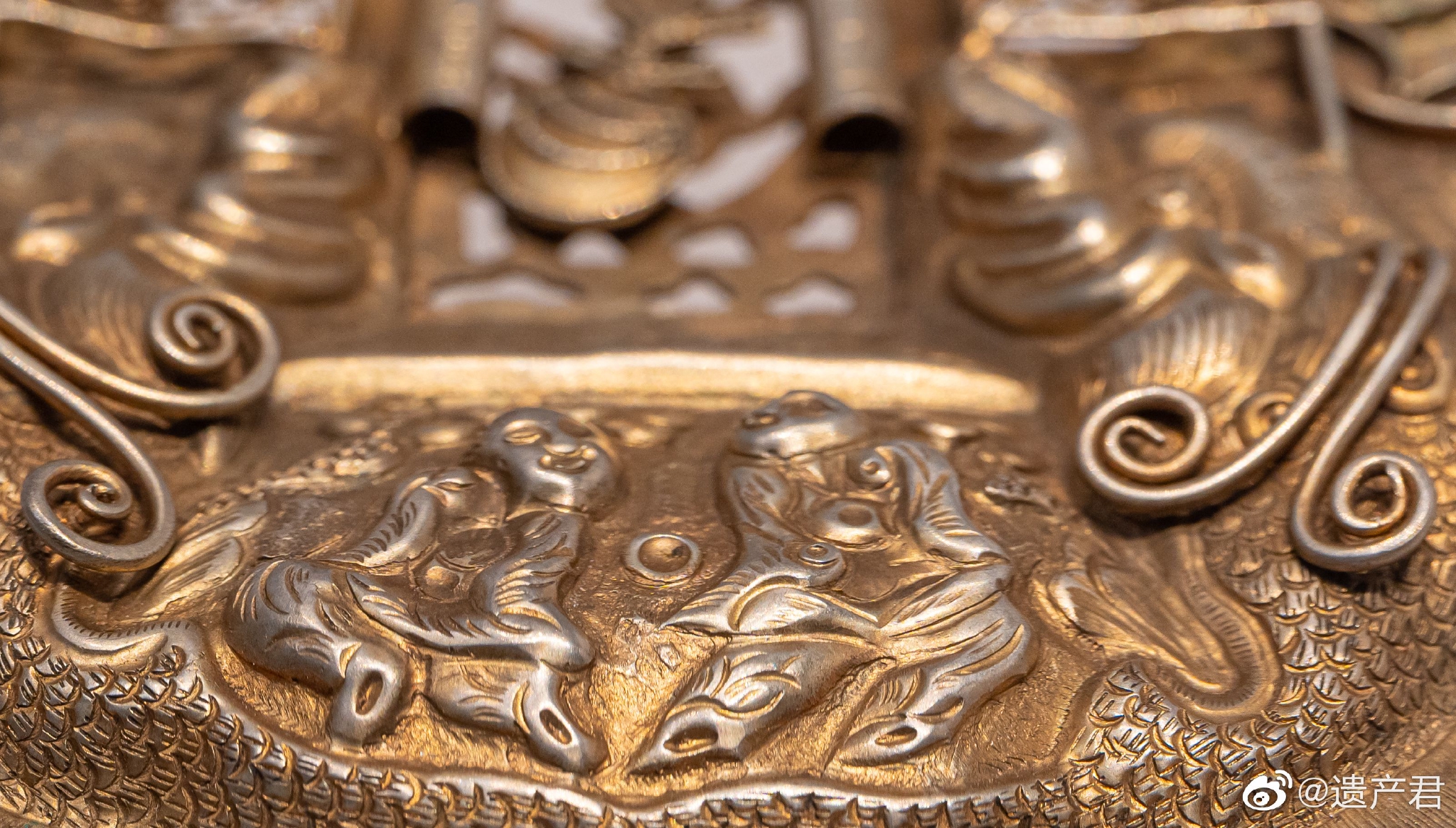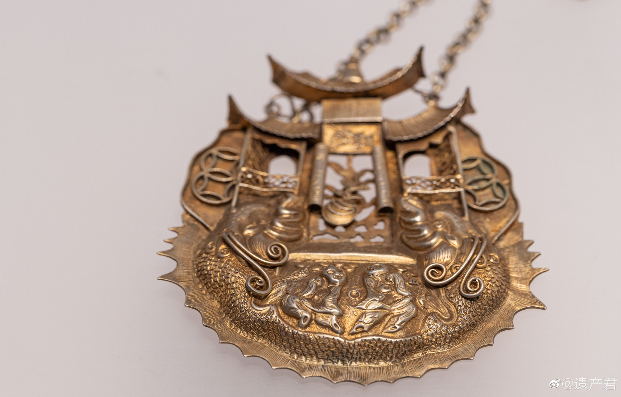 嘉定博物馆收藏的清代鲤鱼跳龙门鎏金银锁……